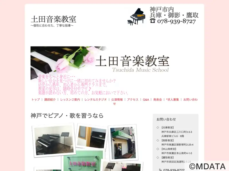 神戸市を拠点とする音楽教室。市内に複数の教室を展開し、ピアノ、声楽、リトミック、ボイストレーニング、コーラスなど多彩なレッスンを開講している。すべてのレッスンは個別対応で、年齢や経験、目的に応じた丁寧な指導を基本としている。幼児のリトミックから熟年層の趣味、音楽大学や保育士試験を目指す専門的な指導、作曲実技やソルフェージュ・楽典に至るまで、幅広く対応。地域に根ざした音楽活動にも力を入れている。