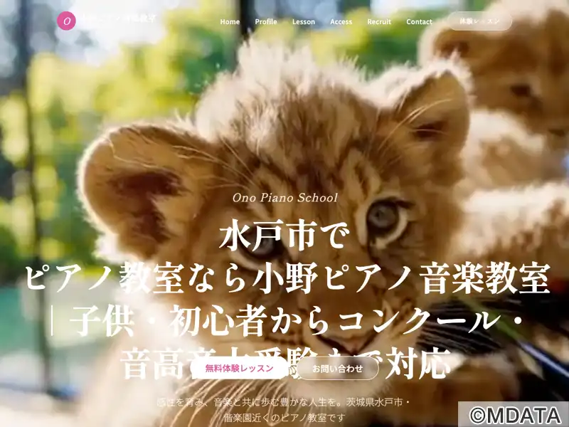 水戸の偕楽園近くのピアノ教室。ピアニスト小野智恵氏と国際コンクール入賞歴などをもつ講師陣が質の高いレッスンを提供。一般コース、専門コース、ソルフェージュコースがあり、趣味で習いたい方から専門志望、絶対音感の育成など、目的に合わせたレッスンが可能。コンクール入賞者や音高・音大受験合格者も多く輩出し、TIAAより優秀指導者賞を受賞。パリ留学経験を活かしたアドバイスも行う。水戸と多賀城の2教室を運営。