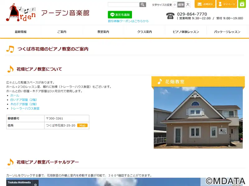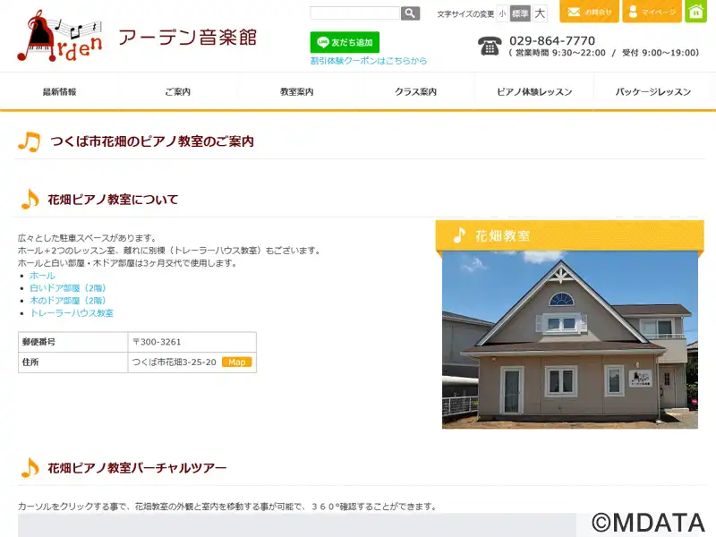 茨城県つくば市にあるアーデン音楽館の花畑教室は、ホールと2つのレッスン室、トレーラーハウス教室を備えている。ピアノクラスでは、1レッスン45分の丁寧な指導を行い、自立した練習習慣の定着をサポートする。また、リトミック研究センター認定教室として、1歳から参加できる少人数制のリトミッククラスもも行っている。大人向けのピアノクラスもあり、初心者から専門的な学びを求める方まで最適なレッスンを提供している。