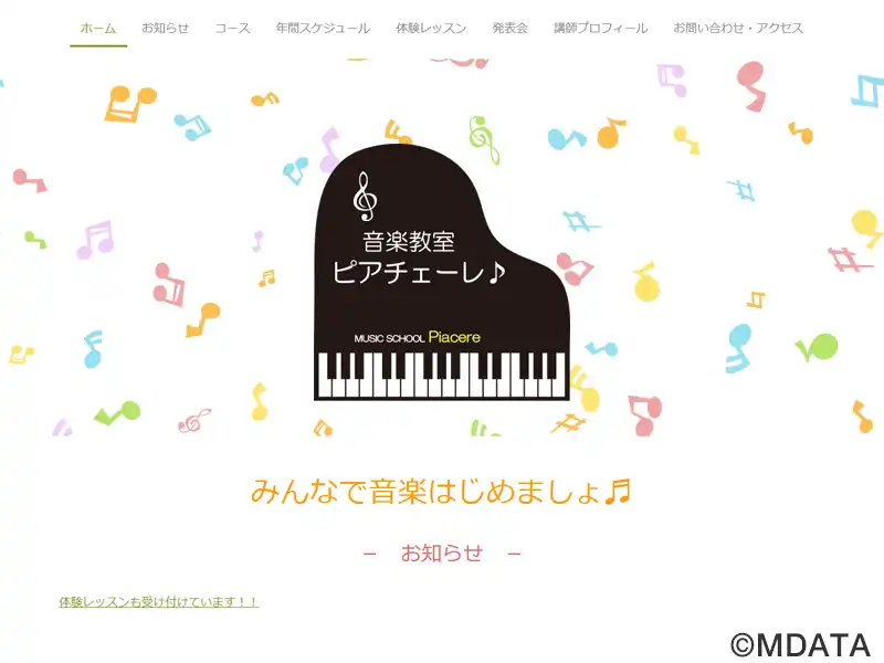 岐阜県可児市みずきヶ丘にある音楽教室。幼児から大人まで幅広い年齢層を対象に、ソルフェージュを取り入れた総合的な音楽力を養うレッスンを提供。ピアノやエレクトーン、楽典、ミュージックベル・トーンチャイム、連弾・アンサンブルなど、多彩なカリキュラムが用意し、ヤマハ演奏グレードテストや保育科受験にも対応する。また、保育士や教員を目指す方の受験対策や、授業課題フォロー、園などでの行事の編曲支援も行っている。