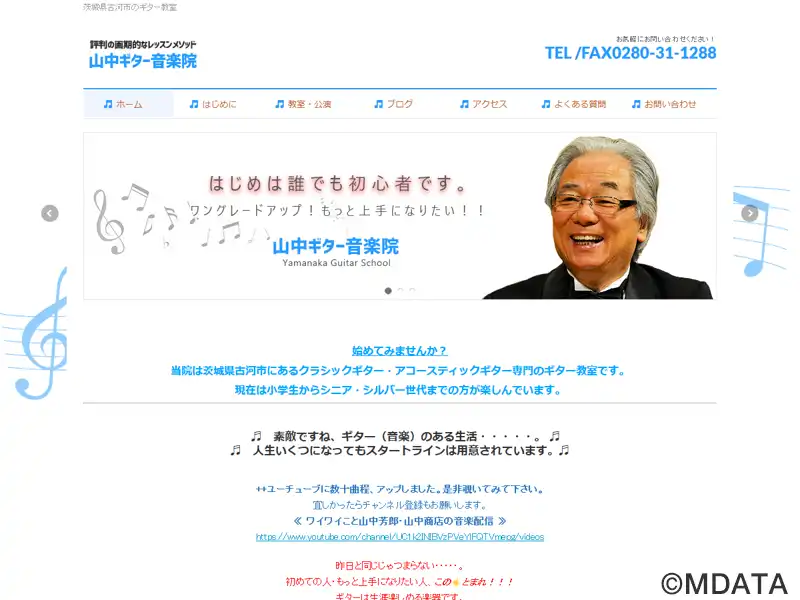 茨城県古河市にある、山中芳郎氏が主宰するギター専門の教室。しています。初心者から経験者、さらにはプロ志望者まで幅広く対象に、基本的な技術や姿勢、楽譜の読み方などの指導を行う。山中氏は、メキシコやスペインでの学びの経験を持ち、右手3本指のクラッシクギタリストとしても知られ、2009年には東久邇宮「文化褒章」を受賞。「らくらくギター教本」や「50歳からのクラッシク・ギター入門」などの教材も出版している。