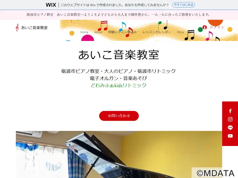 富山県砺波市にあるピアノ教室。幼児から大人までを対象に個人レッスンを行っている。カワイ音楽教育システム「サウンドツリー」を使用し、子どもの想像力を育むレッスンを提供します。リトミック教室は幼稚園のホールで開催され、ダルクローズシステムを使ってリズム感や表現力を育てるレッスンを行う。個々のペースや興味に合わせた指導、発表会やコンクールへの参加機会、幼稚園や保育園での出張リトミック講座なども行っている。