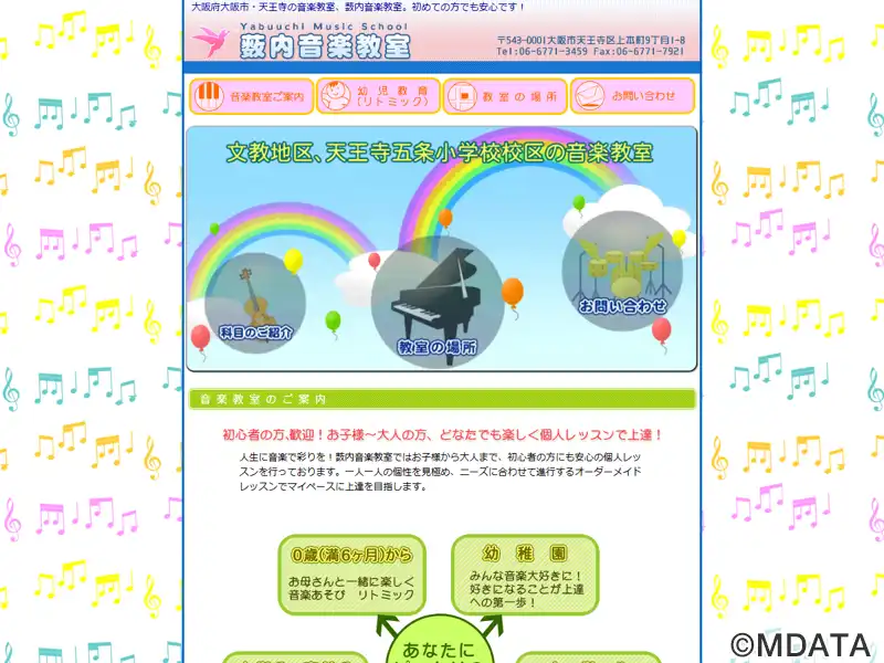 大阪府大阪市・天王寺にある音楽教室。初心者から経験者まで個別レッスンを提供している。一人一人のニーズに合わせたオーダーメイドの指導が特徴で、大人の初心者も、譜面が読めなくてもポピュラー、映画音楽から童謡まで、様々なジャンルの曲を学ぶことができる。伝統的な教えをベースに、最新のミュージックデータも活用、レッスンを楽しく効果的に進めている。特に子供向けには、リズムや歌を取り入れた楽しいレッスンを行う。