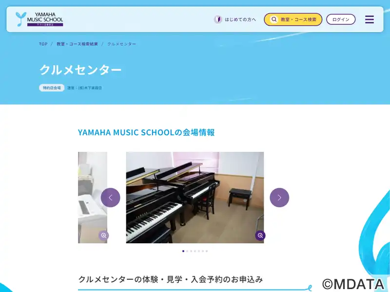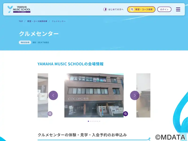 福岡県久留米市の西鉄久留米駅より徒歩3分の場所にある、木下楽器のレッスンセンター。ヤマハ音楽教室として子どもから大人まで幅広い年齢層に対応するレッスンを提供し。ピアノやバイオリン、チェロ、二胡、エレクトーンのレッスンがあり、アンサンブルの練習ができる部屋も完備。施設内には大部屋、中部屋、小部屋の7つのレッスン室があり、計8台のグランドピアノを設置。広々としたロビーもあり。ベビーカー置き場などもあり