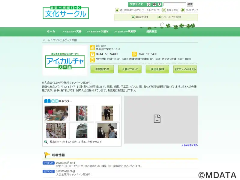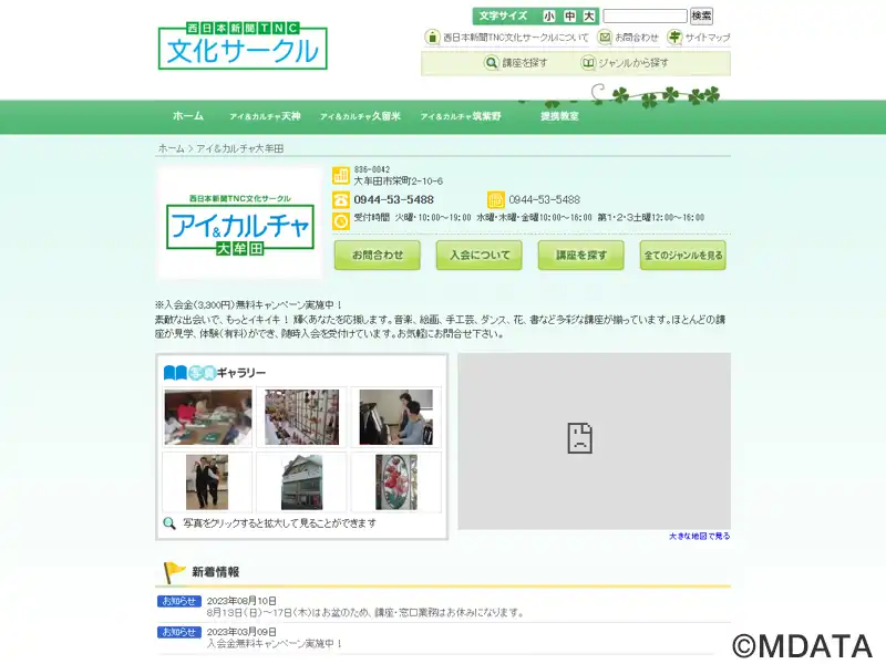 大牟田市にある西日本新聞TNC文化サークルが運営するカルチャーセンター。「耕す」(Cultivate)、「創る」(Create)、「貢献」(Contribute)の3つの「C」を理念の中核に据え、やってみよう、という学ぶ意欲に応える。初心者の方、シニアの方でも安心して楽しめる幅広い講座を開講する。伝統芸能・音楽ジャンルでは、ピアノ、ウクレレ、長唄三味線、沖縄三味線、謡曲喜多流、ポップス・シャンソン、ボイストレーニングなどの講座を開講。