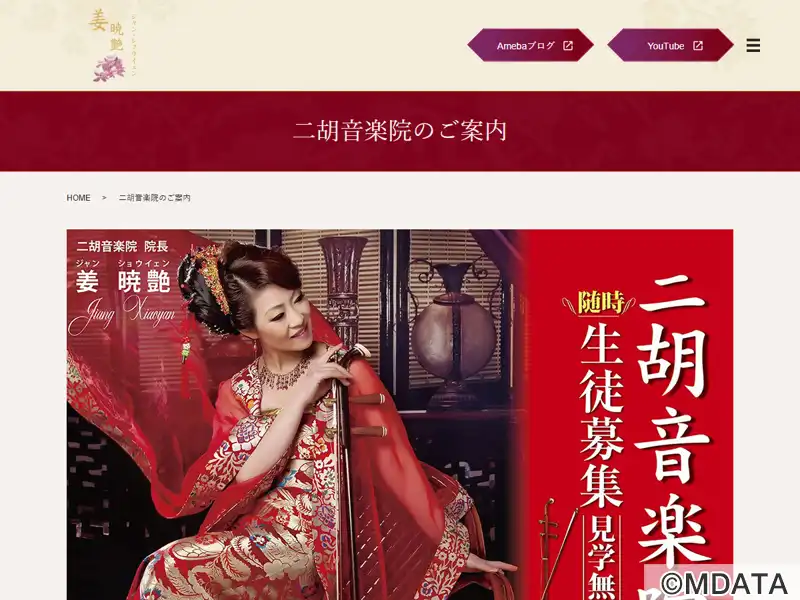 姜暁艶が主宰する広島の二胡教室。二胡のアンサンブルを楽しめるグループレッスン、しっかりママイペースに進める個人レッスン、プロ・講師養成、生徒さんのニーズに合った指導を行っています。楽器経験の有無や年齢を問わず、楽しくレッスンしています。二胡レンタルあり。練習の成果は年に一度のアンサンブルコンサートで披露。中国語講座との合同レッスンもあります。見学・体験・入会随時受付中。