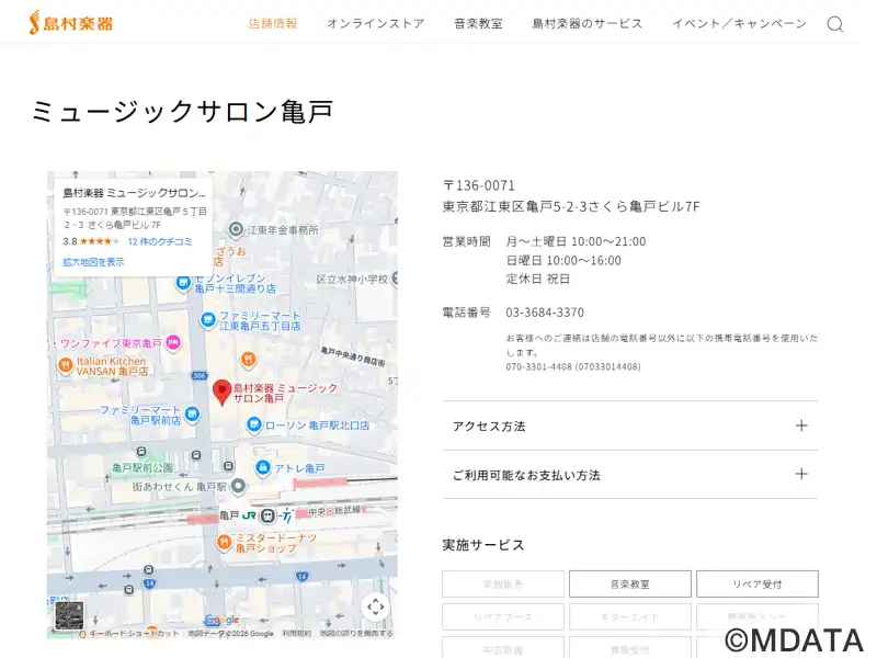 | 名称 | 島村楽器 ミュージックサロン亀戸 |