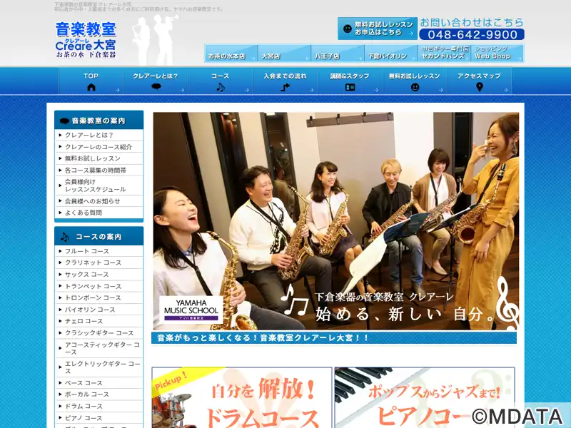 JR大宮駅から徒歩3分にある、2006年開校の音楽教室。老舗楽器店のお茶の水・下倉楽器が運営し、ピアノ、サックス、バイオリン・チェロ、ドラム、フルートコースなどの人気コースを提供する。初心者の方から受講可能で、ヤマハ認定講師による共通テキストとカリキュラムで学ぶ大人のための「ヤマハミュージックレッスン」や、音大受験にも対応できる上級レベルの著名プロによるオリジナルレッスンを開講している。