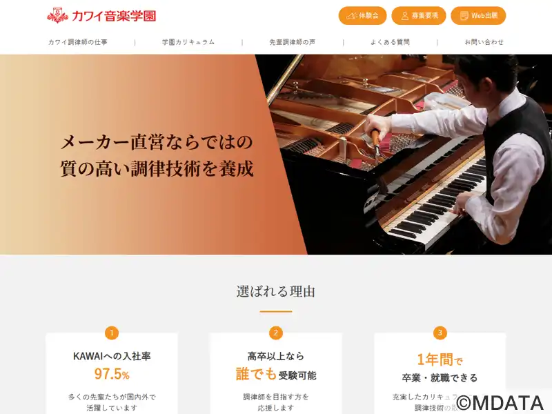 静岡県浜松市にある河合楽器製作所に併設されている、ピアノの調律師学校。ピアノの調律、整調、修理を中心とした実技科目のほか、ピアノの歴史や構造、設計、一般的な音楽知識を含む幅広いカリキュラムを提供している。メーカー直営だからこそ得られる質の高い技術や、様々な知識を身につけることができる。受験資格は高等学校卒業以上で、修業年限は1年間。卒業後は、河合楽器製作所やカワイ特約店への就職をサポートしている。