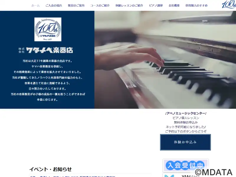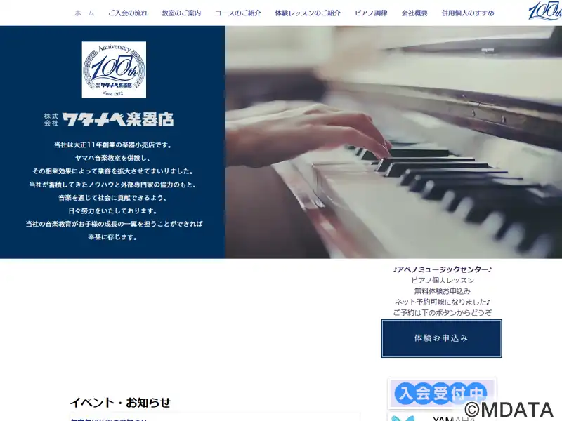 大阪市阿倍野区に位置する大正11年創業のワタナベ楽器のレッスンセンター。2006年にオープンした本館「音楽館」は、子どもから大人まで幅広い年齢層が学ぶ。ヤマハ音楽教室や英語教室、多様なコースのヤマハ大人の音楽レッスンや、クラシックギター、シャンソン、テルミン、カリンバなど独自のオリジナルレッスンも開講。専門講師による指導のもと、初心者から経験者まで、それぞれの目的や感性に応じて学ぶことができる。