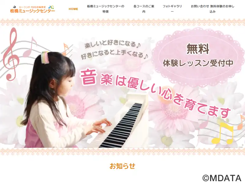 板橋区志村坂上のローランドRMS音楽教室。ピアノ科、電子オルガン科、りとみっくぴあの科(リトミックの要素を多く取り入れた2歳半からのピアノレッスン)、大人のためのピアノ・オルガン科を開講。子どもから大人まで幅広い年齢層を対象に、初心者からプロ志向の方までが音楽に親しめるよう、一人ひとりの個性やペースに合わせた個人レッスンを行っている。生徒が音楽を楽しみながら成長する温かな学びの場を提供している。
