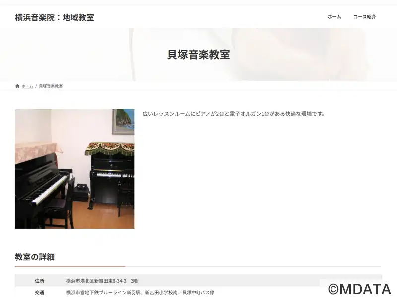 横浜市港北区にある、横浜アオバ楽器・ローランド・ミュージック・スクールの音楽教室。リトミック(幼児科アトリエランド)、ピアノ科、ポピュラー・ジャズピアノ、オルガン科を開講。初心者から上級者まで、生徒のニーズや目標に合わせたレッスンで、楽器演奏をより楽しく、レパートリーもふやす指導を行う。レッスン室にはアップライトピアノ2台とローランド・ミュージックアトリエAT-80S V2を設置している。