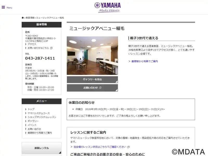 | 名称 | ミュージックアベニュー稲毛 ヤマハミュージック |