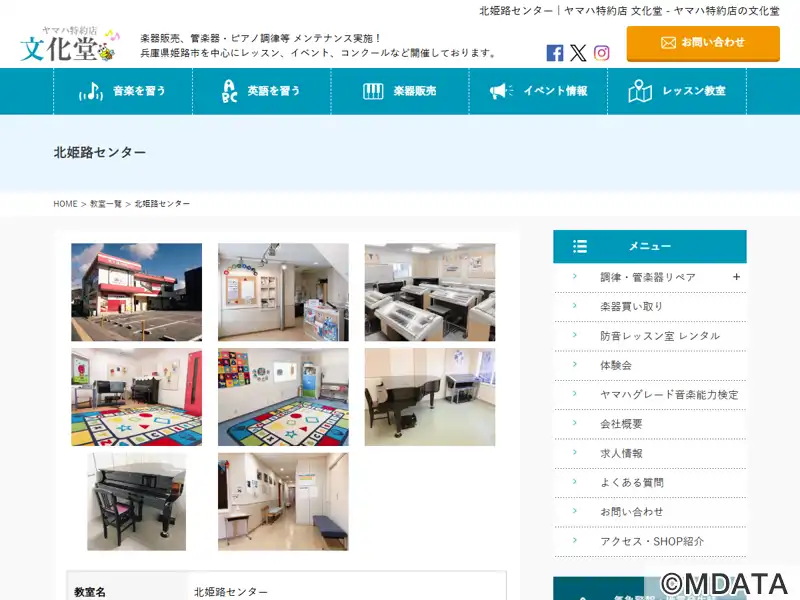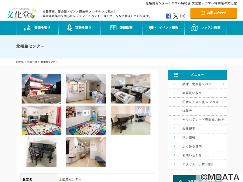 姫路市増位新町にある文化堂のレッスンセンター北姫路教室。西播唯一のヤマハ音楽教室を運営する楽器店文化堂では、長年に渡るヤマハの音楽教室プログラムの長所を取り入れ、ベテラン講師による楽しいレッスンを行っている。ヤマハ認定講師による共通テキストとカリキュラムを用いた、子ども向けのピアノやエレクトーンレッスンの「ヤマハ音楽教室」や「ヤマハ英語教室」や、ピアノやエレクトーン、フルートなどのオリジナルレッスンを開催。