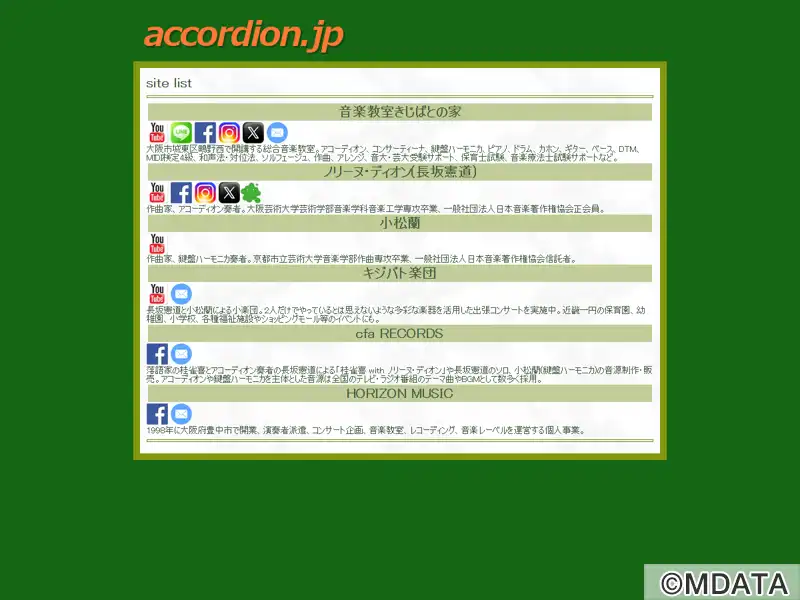 城東区鴫野にある総合音楽教室。2023年1月より豊中市から鴫野西に移転。長坂憲道(作曲家・アコーディオン奏者)と小松蘭(作曲家・鍵盤ハーモニカ奏者)夫妻が主宰するHORIZON MUSICの教室部門で、アコーディオン、コンサーティーナ、鍵盤ハーモニカ(スズキ認定)、ピアノやソルフェージュなど多彩な科目を開講し、音大・芸大受験や保育士・音楽療法士試験のサポート、和声法・対位法の指導も行なっている。