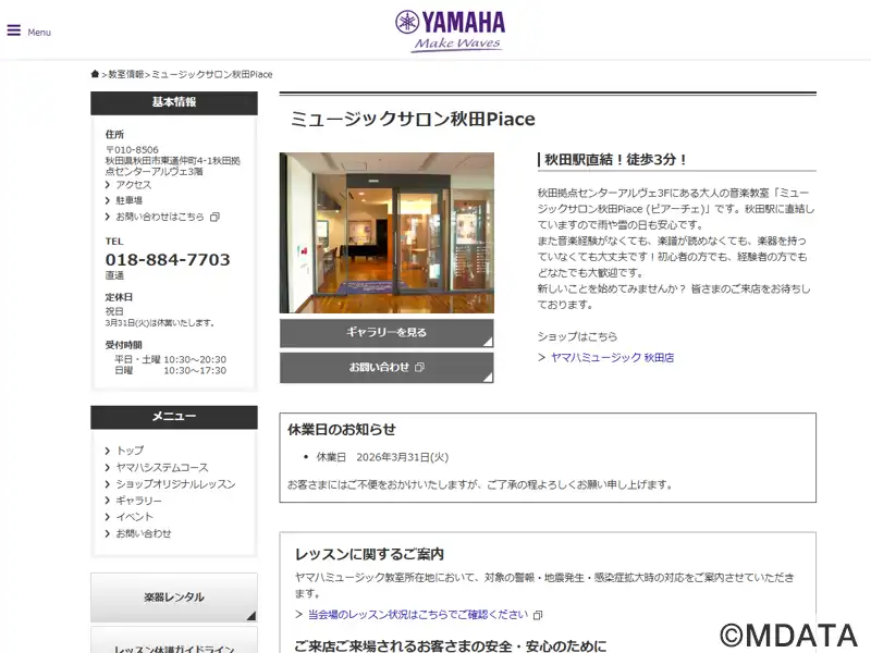 | 名称 | ミュージックサロン秋田Piace ヤマハミュージック |