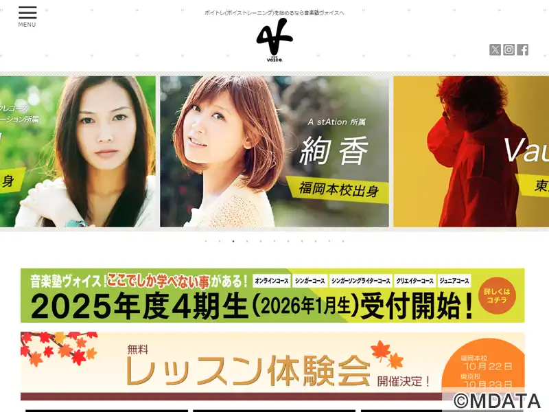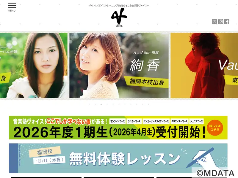 メジャーアーティストを輩出してきた福岡の音楽塾「ヴォイス」。 他のスクールには真似のできない独自のレッスン法「ヴォイス理論」と少人数制で行うレッスン体制。厳しくもあり、達成感のある独自のレッスンは生徒の才能を確実に引き出します。徹底した少人数制のレッスンのため入塾はオーディション制。次なるメジャーアーティストの発掘に向け、業界から高い注目を浴びています。