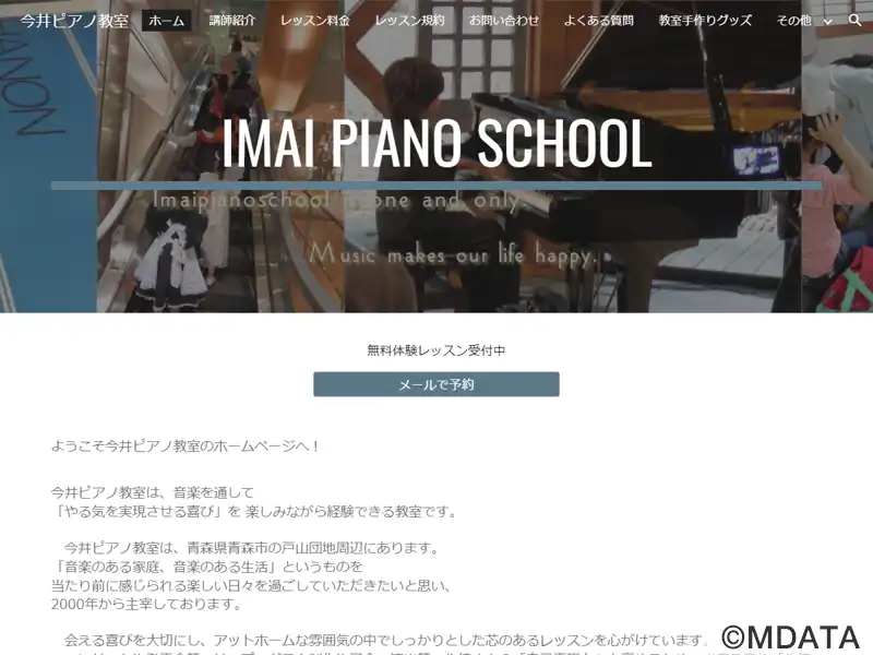 青森市月見野の戸山団地周辺に位置する個人ピアノ教室。2000年に開講。アットホームな雰囲気でレッスンを提供している。幼児から高校生までの「幼児~高校生コース」と、個別に対応する「1レッスンコース」の2つのコースを用意し、生徒一人ひとりの個性を生かした指導を心がける。ま自己表現力を高めるためのイベントや2年に1回の発表会も開催。生徒が音楽を通じて「やる気を実現する喜び」を感じられる場所を目指している。