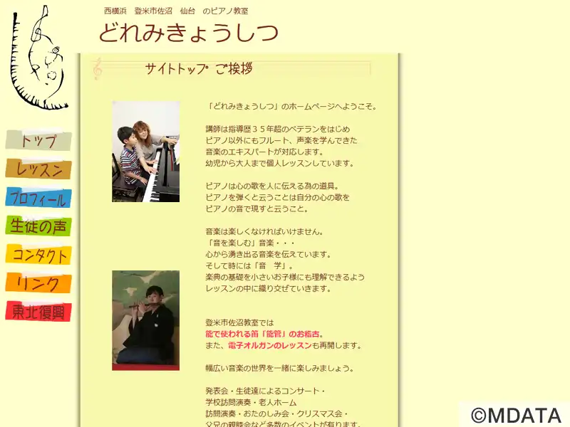 西横浜にあるユニークで楽しいピアノ教室。高橋日出子氏(全国優秀指導者賞受賞講師)が主宰し、ピアノコース・電子オルガンコースを開講している。指導歴豊富なベテラン講師が、幼児からシルバー世代まで、生徒ひとりひとりの状況と進度に合わせた個人指導でレッスンを行う。また、保育士や小学校教師向けの指導も行っており、幅広い年齢層に対応している。宮城県仙台市、登米市佐沼にも分校があり、能管(笛)のレッスンも行う。