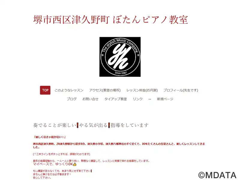 堺市津久野町のピアノ教室です。お子様からシニアの方まで、初心者の方、以前に習っていて再び始めたい方も大歓迎。アットホームな教室で、ジャンルに関係なく、憧れの曲や弾いてみたい曲を生徒さん一人ひとりのペースに合わせて、ゆったりのんびりレッスンしています。今なら楽しく弾けますよ。一緒にやってみましょう。ぜひ1度体験にいらして下さい。駐車場あり。