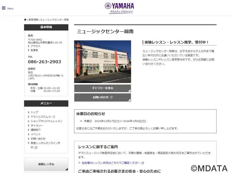 | 名称 | ミュージックセンター岡南 ヤマハミュージック |