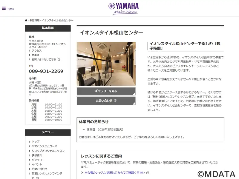 | 名称 | イオンスタイル松山センター ヤマハミュージック |