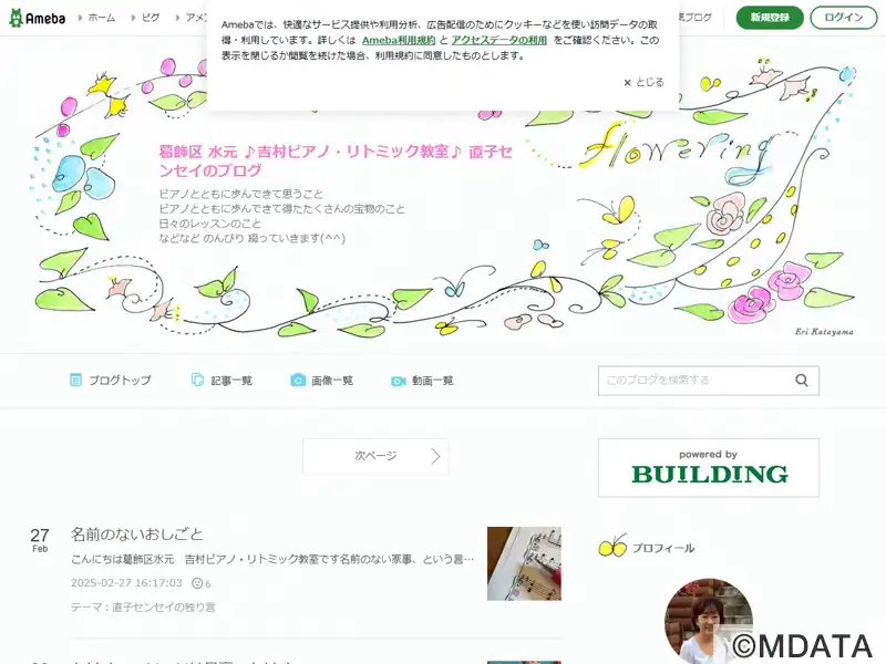 葛飾区水元にあるピアノ・リトミック教室。幅広い世代の方が、個性や目的に合ったペースでピアノを学べるアットホームな環境。楽譜を正確に読み、曲の奥行を深く理解することで、演奏技術だけでなく、ピアノの楽しさを知り、豊かな心を育むことを基本的な方針としている。また、リトミック研究センター東京第一支局認定教室として、音楽を楽しみながらこどもの基礎能力を伸ばす、少人数制のリトミック教室を開設している。