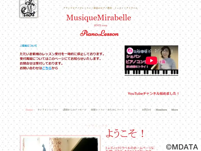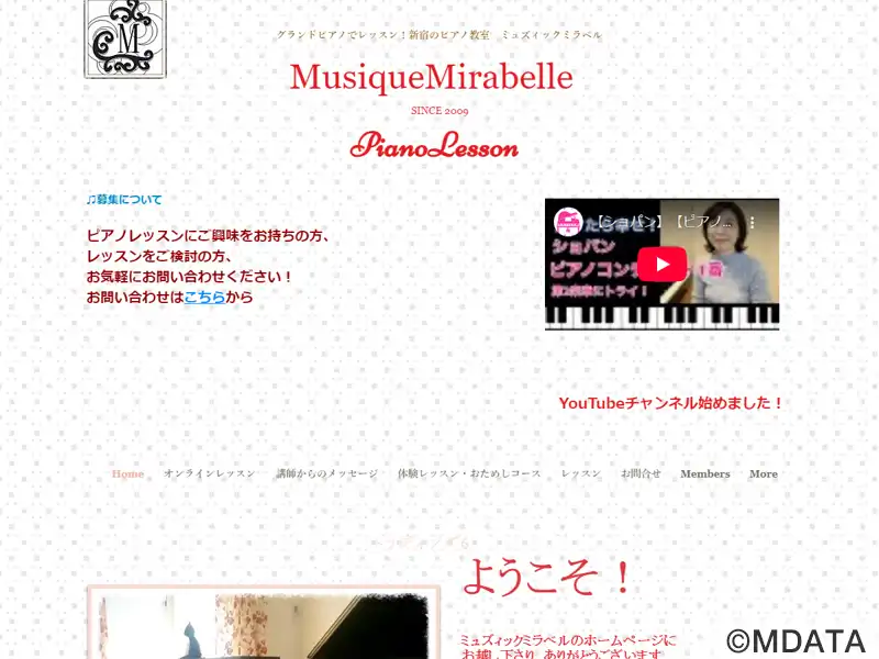 Musique Mirabelleは、初めてピアノに触れるお子さんから大人の初心者・経験者まで、楽しみながら上達を目指すピアノ教室です。キッズコースではリズムあそびや歌を取り入れて少しずつ音楽とピアノに慣れていきます。基礎をしっかり学びながら、一人ひとりのペースやレベル、好みに応じて指導します。レッスン時間が21時台までなのでお仕事帰りのレッスンもOK。体験レッスン実施中。