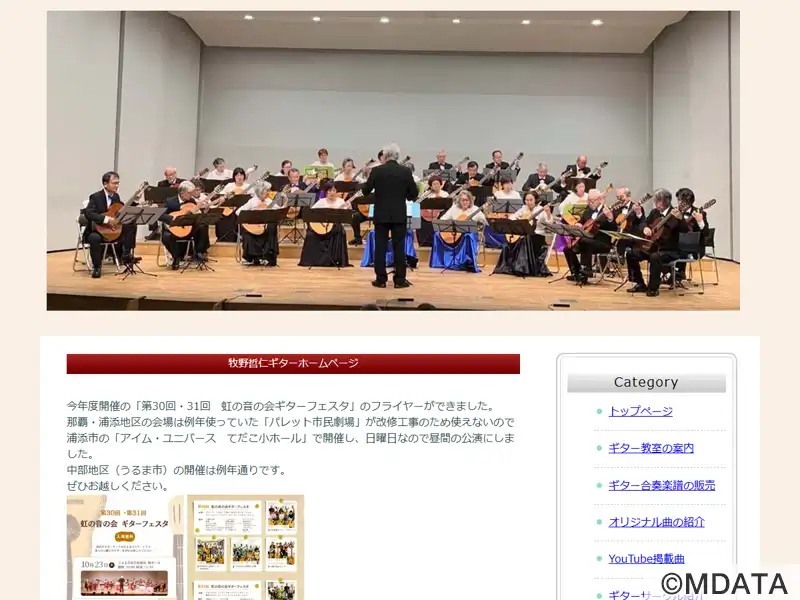 覇市新都心天久に位置するギター奏者の牧野哲仁が主宰するクラシックギター教室。個々の生徒の個性に合わせたマンツーマンレッスンを提供。グループレッスンや合奏サークルも用意。自分のペースで学びながら、正しい練習方法を身につけることができる。初心者や楽譜が読めない方でも、よく知られたメロディーから始め、楽器の持ち方や音の出し方など基本的な技術を学ぶことができる。また、練習用のギターの貸し出しも用意している。