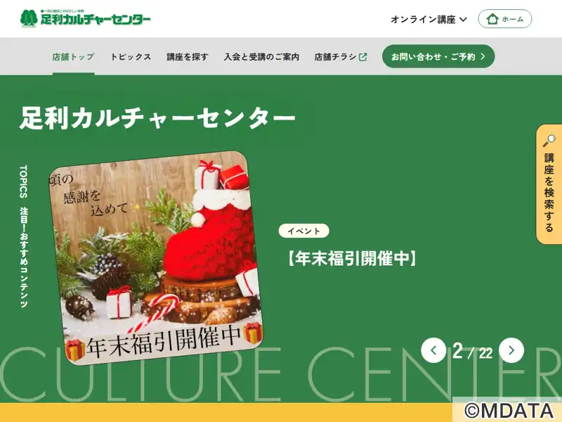 足利市にある、地域主導型ショッピングモールコムファースト2Fにある、株式会社カルチャーが運営するカルチャーセンター。「一流の講師とすばらしい仲間」をモットーにする。初心者の方も久しく遠ざかっていた方も歓迎する。音楽講座はピアノ・電子オルガン、ギター、ウクレレ、フルート、大正琴・胡弓、三味線・三線、コーラス・愛唱歌、ボイストレーニング、カラオケなど、キッズからシニアまで楽しめる豊富なコースを用意する。