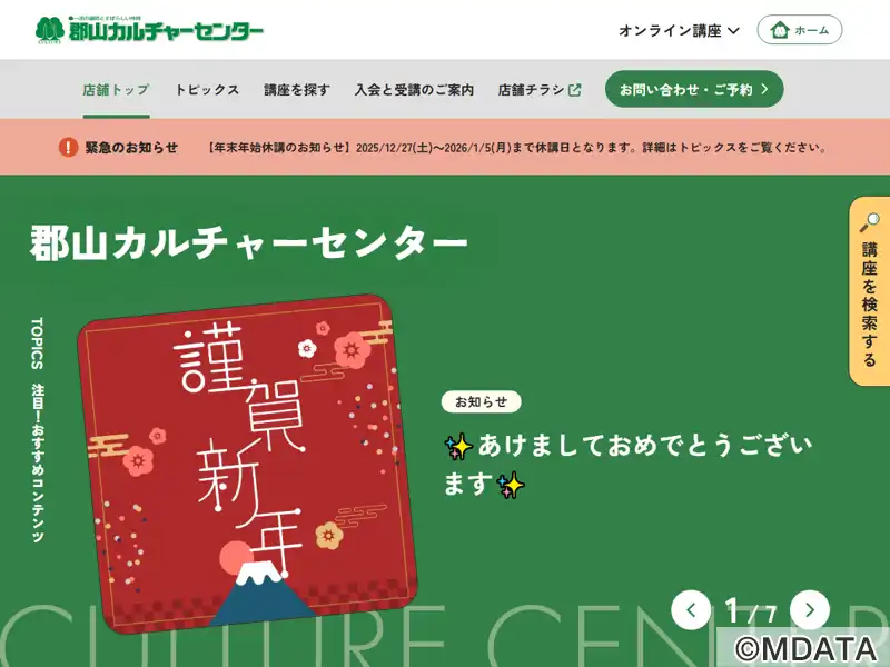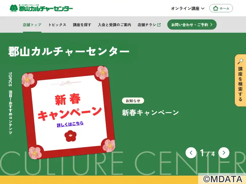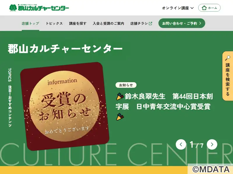 郡山市のイトーヨーカドー郡山店4Fにある、株式会社カルチャー運営のカルチャーセンター。「一流の講師とすばらしい仲間」をモットーに、子どもからシニアの方まで楽しめる幅広いコースを揃える。音楽講座はピアノ・電子オルガン、ギター、ウクレレ、ハーモニカ、オカリナ、二胡、三味線・三線、シャンソン・カンツォーネ、コーラス・愛唱歌、ポピュラー・ジャズ、ボイストレーニング、カラオケ、民謡、和楽器・篠笛・太鼓を開講。
