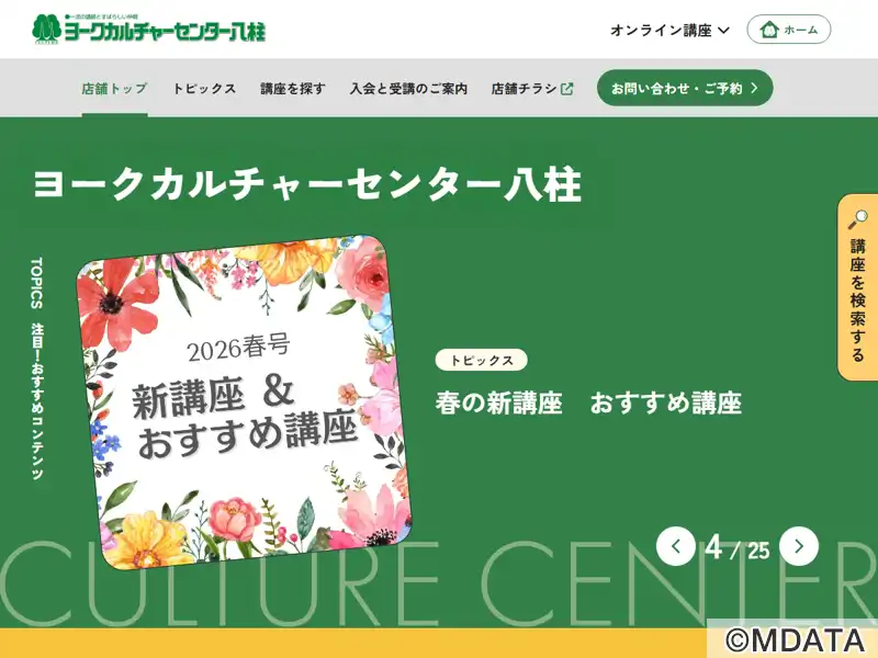 松戸市にあるイトーヨーカドー八柱店3Fにあるカルチャーセンター。「一流の講師とすばらしい仲間」をモットーに子どもからシニアまで楽しめる多彩なコースを開講。音楽講座はピアノ・電子オルガン、ヴァイオリン、ギター、ウクレレ、マンドリン・ハープ、フルート、ハーモニカ、サックス・クラリネット、オカリナ、大正琴・胡弓、琴、三味線・三線、シャンソン・カンツォーネ、コーラス、ボイストレーニング、和楽器などを開講。