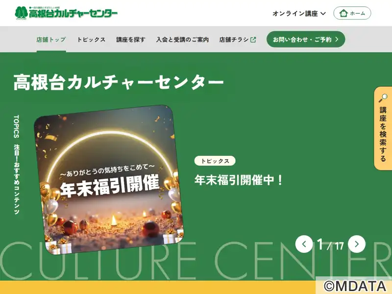 船橋市高根公団駅近くのショッピングモール・エポカ高根台3Fにあるカルチャーセンター。「一流の講師とすばらしい仲間」をモットーに子どもからシニアまで楽しめる多彩なコースを開講。音楽講座はピアノ・電子オルガン、ヴァイオリン、ギター、ウクレレ、フルート、ハーモニカ、オカリナ、大正琴・胡弓、二胡、三味線・三線、シャンソン・カンツォーネ、コーラス・愛唱歌、ポピュラー・ジャズ、ボイストレーニング、カラオケを開講。