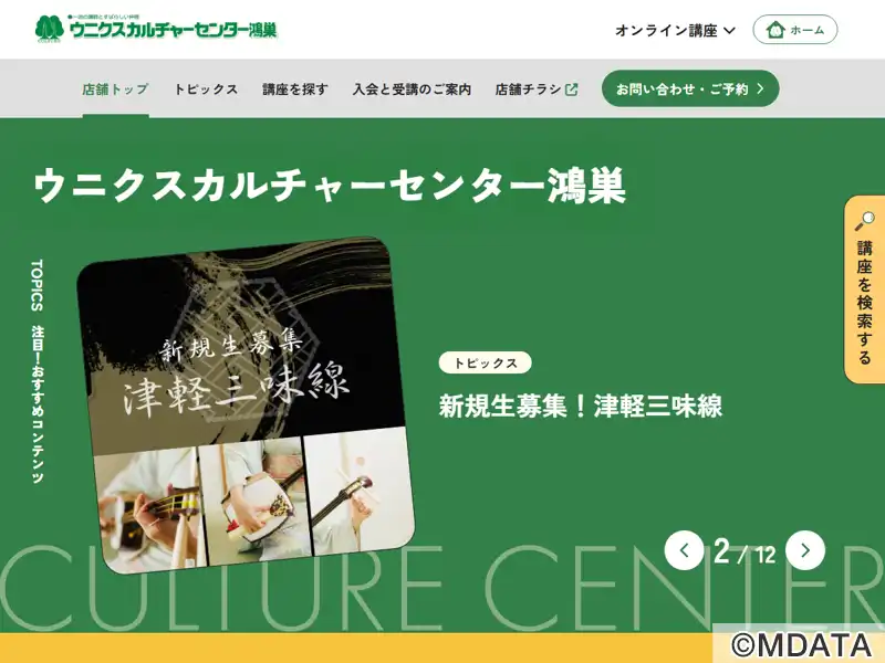 鴻巣市にあるショッピングセンターウニクス鴻巣2階にある、株式会社カルチャーが運営するカルチャーセンター。一流の講師とすばらしい仲間と一緒に音楽や歌のレッスンを楽しめる。音楽講座はピアノ・電子オルガン、ヴァイオリン、ギター、ウクレレ、マンドリン・ハープ、フルート、ハーモニカ、リコーダー・サックス・クラリネット、ドラム、大正琴・胡弓、二胡、三味線・三線、コーラス、ボイストレーニング、カラオケ等を開講。