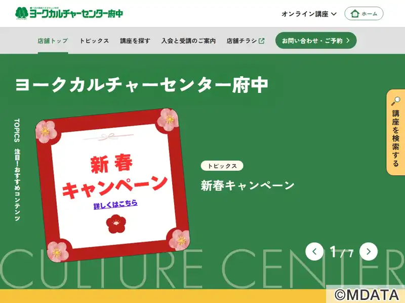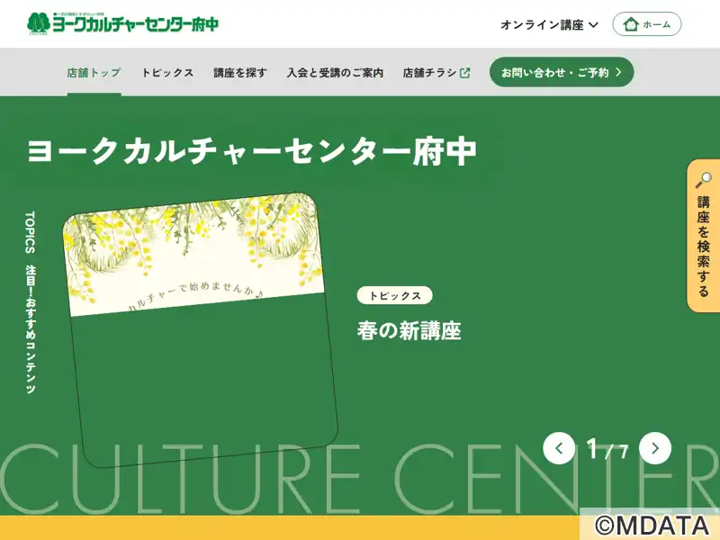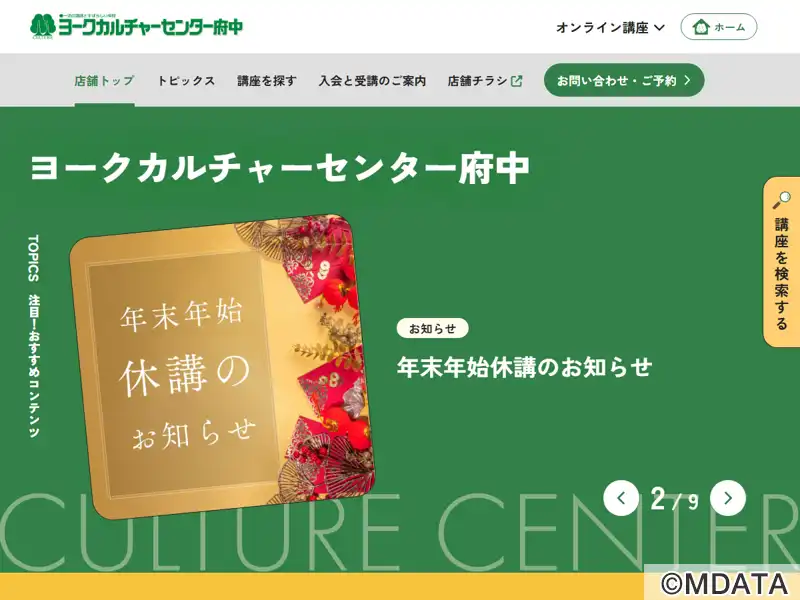 府中市のラウンドワン府中本町店のB1Fにある子どもからシニアまで楽しく学べるカルチャーセンター。株式会社カルチャーが運営し、一流の講師とすばらしい仲間と一緒に様々なレッスンを楽しめる。音楽講座はピアノ・電子オルガン、ギター、ウクレレ、フルート、ハーモニカ、サックス、クラリネット、ドラム、オカリナ、大正琴・胡弓、琴、三味線・三線、コーラス、ポピュラー・ジャズ、ボイストレーニング、カラオケなどを開講。