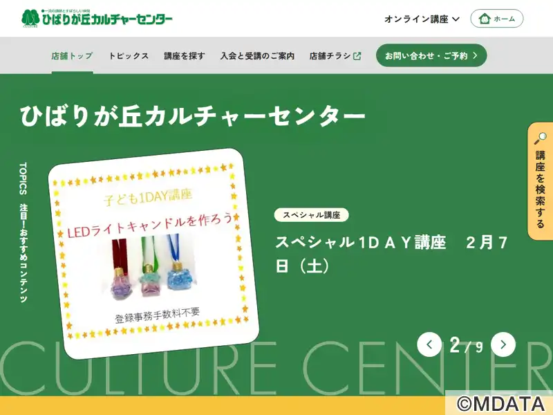 西東京市のひばりが丘駅前のパルコ5Fにある、子どもからシニアまで楽しく学べるカルチャーセンター。一流の講師とすばらしい仲間と一緒に音楽や歌のレッスンを楽しめる。音楽講座はピアノ・電子オルガン、ヴァイオリン、ギター、ウクレレ、マンドリン・ハープ、ドラム、大正琴・胡弓、二胡、三味線・三線、シャンソン・カンツォーネ、コーラス、ポピュラー・ジャズ、ボイストレーニング、カラオケ、和楽器・篠笛・太鼓を開講。
