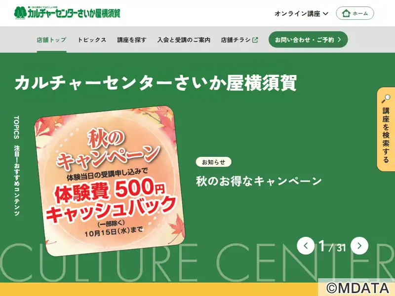 横須賀市にある、株式会社カルチャーが運営するカルチャーセンター。子どもからシニアまで楽しめる多彩なコースを提供。「一流の講師とすばらしい仲間」がモットーに、音楽講座はピアノ・電子オルガン、ヴァイオリン、ウクレレ、ハーモニカ、リコーダー・サックス・クラリネット、ドラム、オカリナ、大正琴・胡弓、琴、三味線・三線、尺八、コーラス、ポピュラー・ジャズ、ボイストレーニング、和楽器・篠笛・太鼓などを開講する。