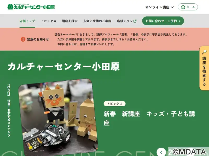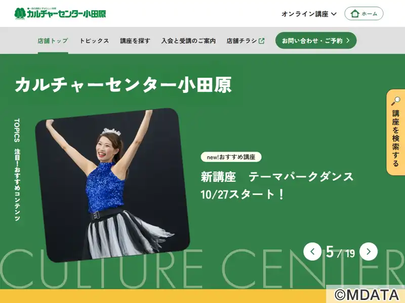 小田原市中里のショッピングモール・ダイナシティウエストの4階にあるカルチャースクール。「一流の講師とすばらしい仲間」をモットーとする。子どもからシニアまで幅広い年代の方が楽しめるコースを多数用意。音楽講座では、ピアノやヴァイオリン、ハープやフルート、二胡や三味線、尺八などの東洋楽器や、コーラスやカラオケ、民謡などの歌唱や、楽典や和楽器、篠笛や太鼓などの演奏から音楽理論まで、さまざまなジャンルを楽しく学べる。