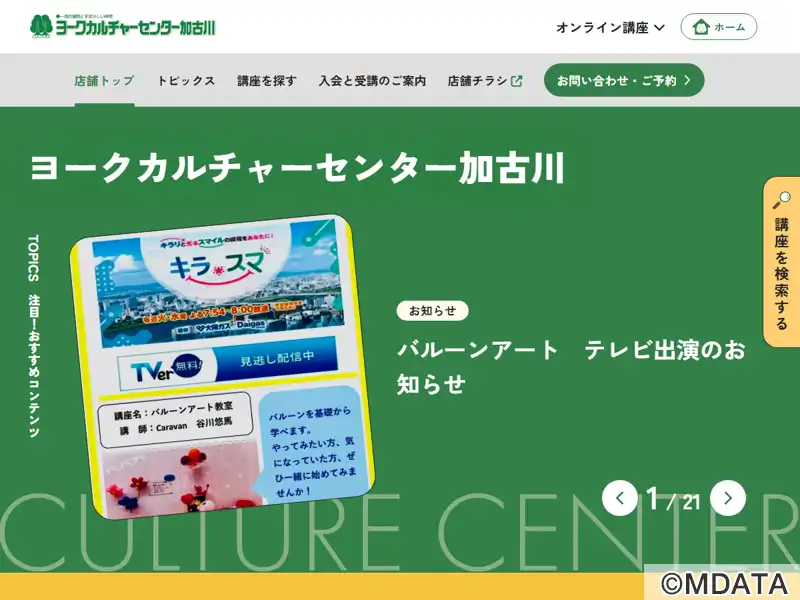 加古川市のアリオモール本館3階にあるカルチャーセンター。子どもからシニアまで幅広い層が楽しめる多彩なコースを、一流の講師とすばらしい仲間をモットーに開講している。スタッフが要望に応え、魅力的な講師を紹介する。音楽講座では、ピアノ、ギター、ウクレレ、マンドリン、フルート、オカリナ、大正琴、胡弓、二胡、楽典、琴、三味線、尺八、コーラス、ポピュラー、ジャズ、ボイストレーニング、カラオケ、詩吟などが学べる。
