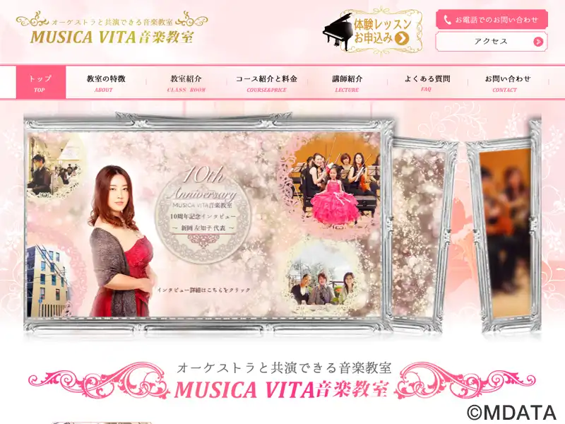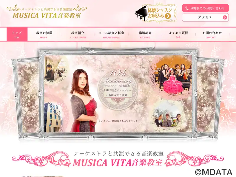 大阪市西区(新町)と天王寺区(上本町)にレッスンセンターのある地域密着・地域貢献型の音楽教室。ピアノやヴァイオリン、声楽、ソルフェージュ、クラリネット、フルート、ギター、ハープなど、幅広い楽器のレッスンを行っている。個人レッスンに加えてオーケストラと共演できる機会もあり、アンサンブルや合奏を体験できるのが特徴。子どもから大人まで、初心者から、それぞれのレベルや目的に応じた指導を受けることができる。
