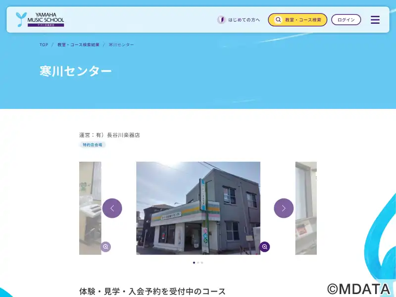 茅ヶ崎にある長谷川楽器店の寒川レッスンセンター。ヤマハ認定講師による共通テキストとカリキュラムを用いて、子ども向けのピアノやエレクトーンレッスンの「ヤマハ音楽教室」や「ヤマハ英語教室」のほか、長谷川楽器オリジナルレッスン「大人のための音楽教室」で、ピアノ、エレクトーン、フルート個人レッスンや大正琴グループレッスンなどを開講。初心者でも安心して楽しめるレッスンを行なっている。