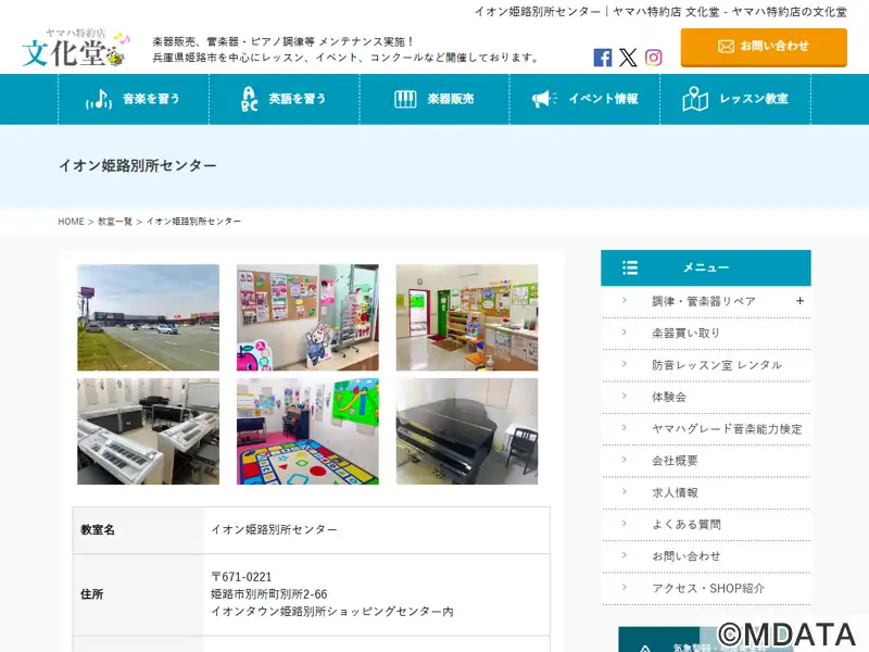 姫路市のイオンタウン姫路別所店内にある文化堂のレッスンセンター。西播唯一のヤマハ音楽教室を運営する楽器店文化堂では、長年に渡るヤマハの音楽教室プログラムの長所を取り入れ、ベテラン講師による楽しいレッスンを行っている。ヤマハ認定講師による共通テキストとカリキュラムを用いた、子ども向けのピアノやエレクトーンレッスンの「ヤマハ音楽教室」や「ヤマハ英語教室」や、ピアノやエレクトーンなどのオリジナルレッスンを開催。