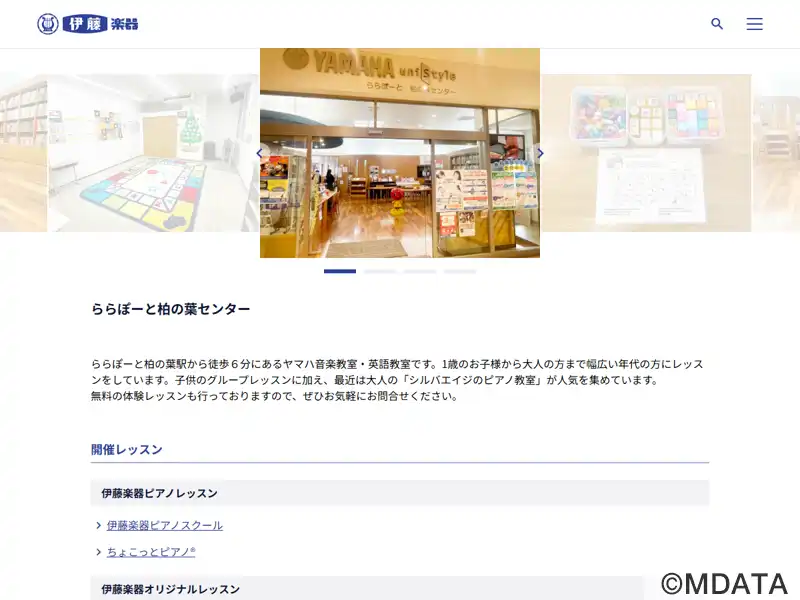 柏の葉キャンパス駅西口のららぽーと柏の葉3階にある伊藤楽器のレッスンセンター。人と音楽、文化が集う快適で安心なヤマハユニスタイル導入店。開放感溢れるロビーでは、様々なコンサートやイベントが開催されている。伊藤楽器オリジナルレッスンのピアノやヴァイオリンコースをはじめ、ヤマハ認定講師による子ども向けの「ヤマハ音楽教室」「ヤマハ英語教室」、大人のための「ヤマハミュージックレッスン」などを開講している。