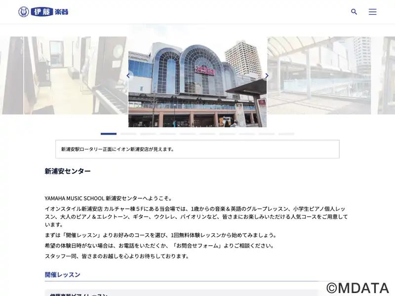 新浦安駅前のイオンスタイル新浦安店西棟5Fにある、伊藤楽器のレッスンセンター。初心者から専門志向の方まで、様々なレベルの音楽レッスンを提供している。伊藤楽器オリジナルのピアノ個人レッスンやヴァイオリンコース、ヤマハ認定講師による共通テキストとカリキュラムに基づいた子供向けの「ヤマハ音楽教室」や「ヤマハ英語教室」、大人向けの「ヤマハミュージックレッスン」を開講。レッスン室はグランドピアノを完備する。