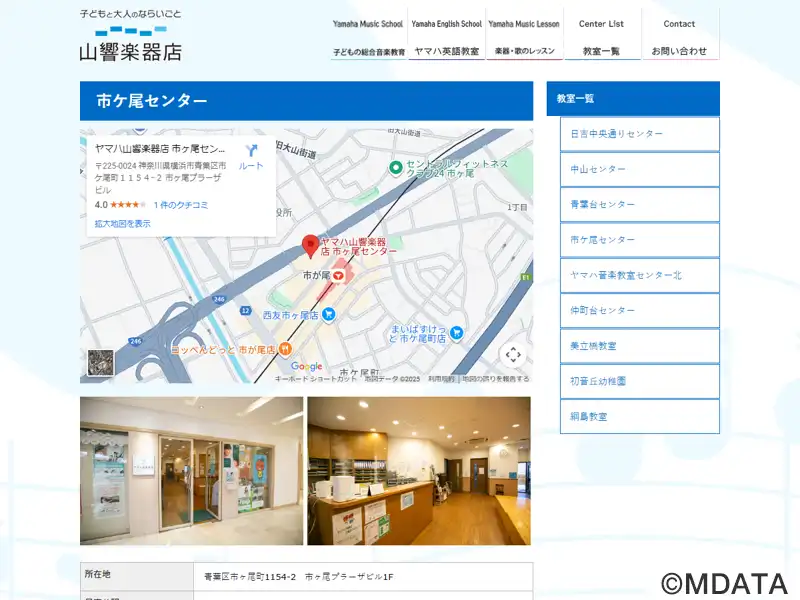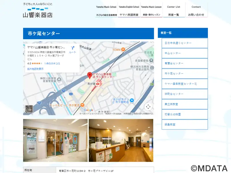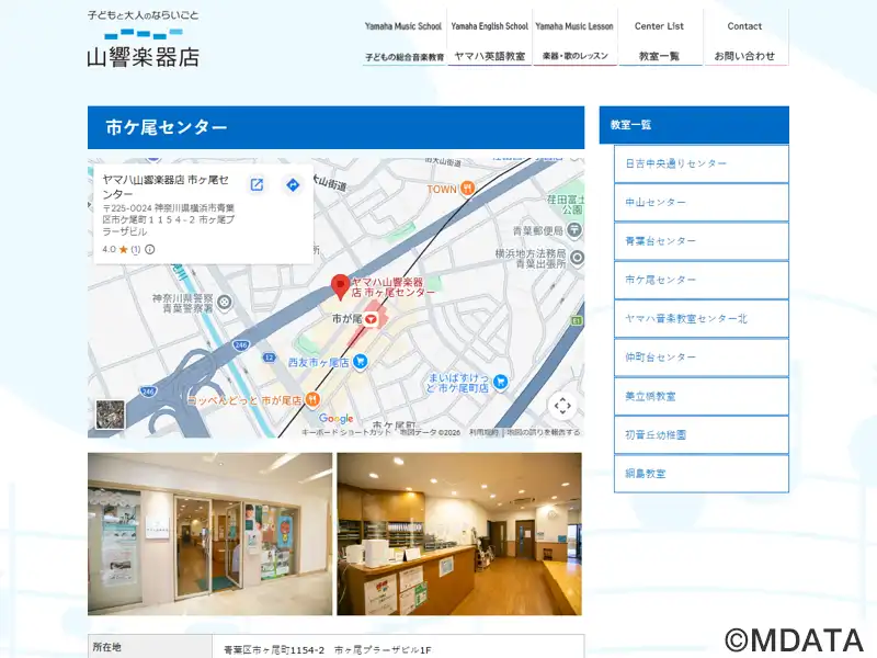 横浜市青葉区にあるヤマハ特約店の山響楽器店のレッスンセンター。ヤマハ認定講師による共通テキスト、カリキュラムでレッスンを行う、子ども向けの「ヤマハ音楽教室」「ヤマハ英語教室」、大人のための「ヤマハミュージックレッスン」や、山響楽器オリジナルレッスンとしてピアノ、エレクトーン、オカリナ、クラシックギター、クラリネット、バイオリン、フルート、ヴェノーヴァコースを開講。全教室にグランドピアノを完備している。