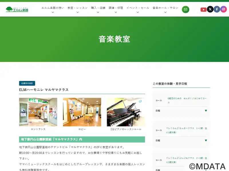 札幌市中央区の地下鉄円山公園駅に直結するエルム楽器のレッスンセンター。 教室は全部で15部屋、グランドピアノ、ヤマハエレクトーンステージアが常備されている。 レッスンは、ヤマハ認定講師による共通テキスト、カリキュラムに基く、供向けの「ヤマハ音楽教室」、大人向けの「ヤマハミュージックレッスン」、さらにエルム楽器独自のコースの、ピアノ、エレクトーン、フルート、サックスなど様々なレッスンが開講されている。