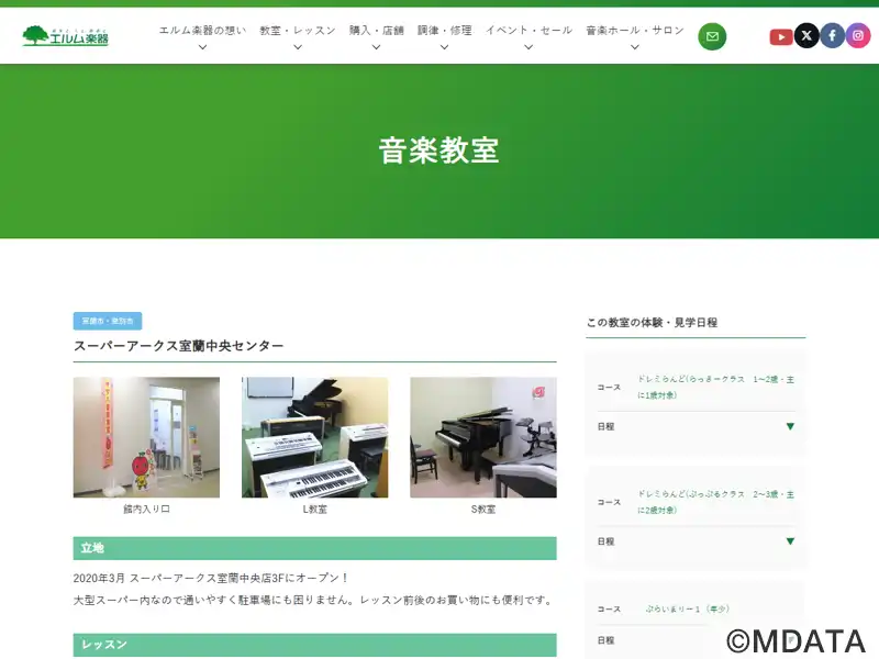 北海道室蘭市中央町にあるエルム楽器のレッスンセンター。2020年に大型スーパー内の3階に開設。ヤマハ音楽教室のグループレッスンや、ピアノ・エレクトーンの個人レッスンなど、多様なコースを用意。未就学児から大人まで幅広い年齢層を対象とし、初心者から経験者まで一人ひとりに合わせた丁寧なレッスンを行う。ジャズピアノやポップススタイルピアノ、ヤマハ青春ポップスなど、音楽を身近に楽しめる地域の拠点となっている。