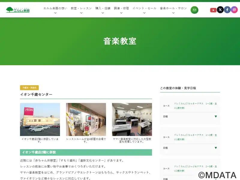 千歳市のイオン千歳店2階にある株式会社エルム楽器のレッスンセンター。全4部屋のレッスンルームで、ヤマハ認定講師による共通テキスト、カリキュラムでレッスンを行う、子ども向けの「ヤマハ音楽教室」、大人のための「ヤマハミュージックレッスン」「歌って踊れる青春ポップス」や、エルム楽器オリジナルレッスンとして、ピアノ、エレクトーン、ヴァイオリン、フルート、サックス、トランペット、ドラムコースなどを開講している。