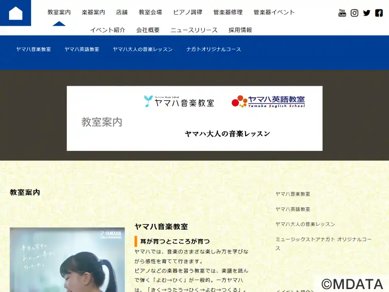 大分県大分市明野に2006年オープンしたミュージックストアナガトのレッスンセンター。ヤマハ音楽教室の拠点として、吹き抜けのロビー、グランドピアノ常設の個人レッスン室、グループレッスン室、英語専用教室、多目的ホールなどを備える。0歳から、小学生向け、大人向けの個人レッスンまで幅広い世代に対応したコースを提供。初心者も楽しみながら基礎を学べる。発表会やミニコンサートなどのイベントも定期開催している。