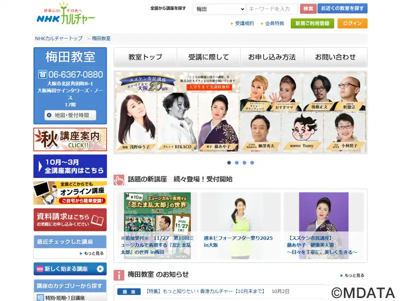 大阪市北区の大阪梅田ツインタワーズ・ノース17階にある、株式会社NHK文化センターのカルチャー教室。「好奇心の、その先へ」を合言葉に、全国で多彩な講座を提供している。NHKの番組に関連する講座など、NHKグループだからこそできるサービスも提供する。音楽講座としては、ゴスペル、シャンソン、童謡、ヴォイストレーニング、コーラス、カンツォーネ、ジャズ・ヴォーカル、ヴォイスピラティスなどのコースを開講している。